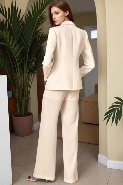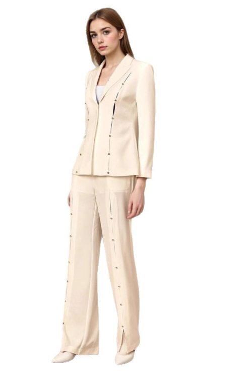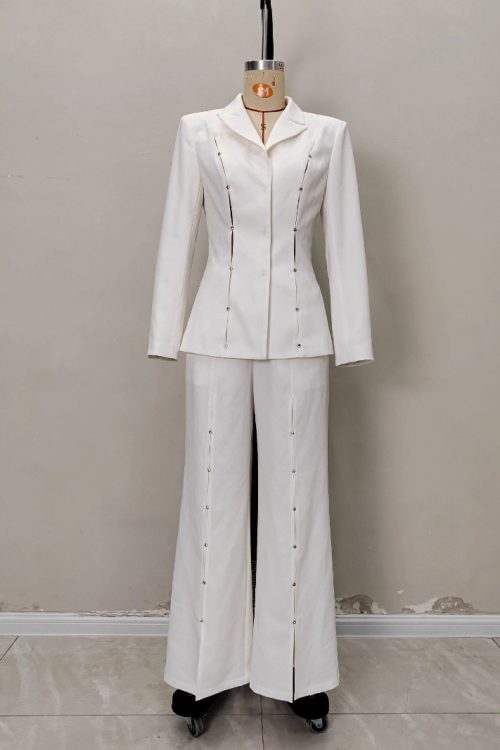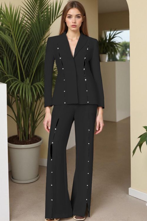 Metal Decorative Strip Embellished Design Trousers Slim Fit Long-sleeve Suit